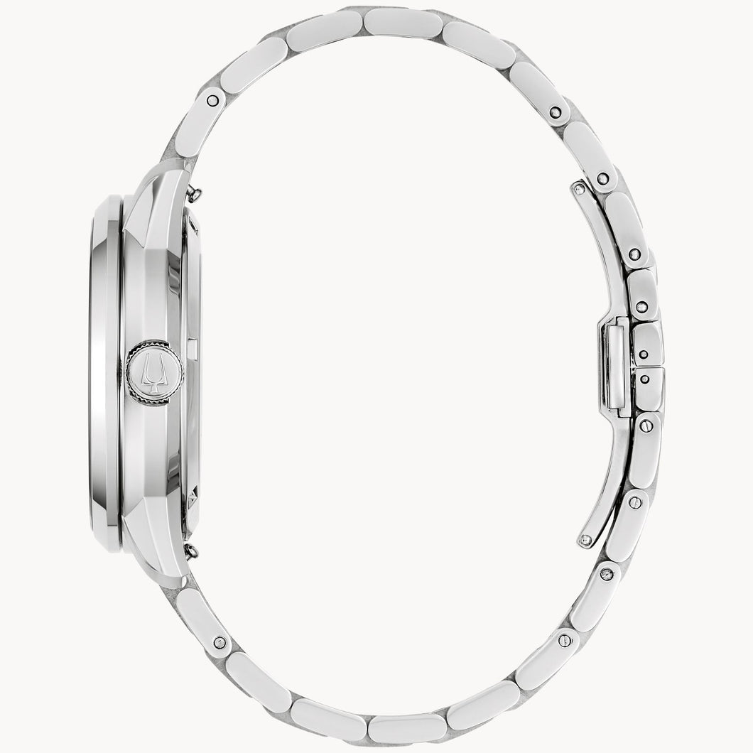 Experience wonder with a Bulova men’s Sutton Automatic timepiece that shows off its complex inner workings. Sculptural and organic, the dynamic silver-tone stainless steel case features a blend of finishes to create a striking presence on the wrist, with a sapphire crystal ensuring optimal clarity. Multilayered and blending complementary finishes, the open green dial is set with applied indices and matching hands with luminescent fill. The dial reveals the captivating mechanics of the 21-jewel skeletonized automatic movement, which offers 42-hours of power reserve. Completed with a matching multi-link stainless steel bracelet, this Bulova men’s watch is the perfect choice to elevate your style.